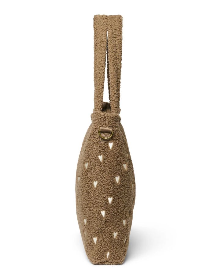 Die Wickeltasche Teddy Brown Hearts von Studio Noos ist ein echtes Must-have für Eltern, die Stil und Funktionalität miteinander verbinden möchten. Das weiche Teddy-Material in Braun mit dezent gestickten Herzen sorgt für eine moderne Optik, während die durchdachten Details den Alltag mit Kind erleichtern.