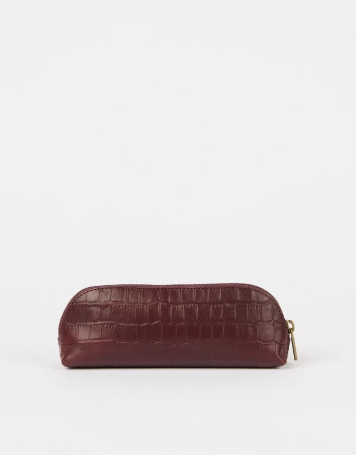 O MY BAG Pencil Case Croco Large Dark Cherry – geräumiges Etui aus Croco-Leder mit Reißverschluss.