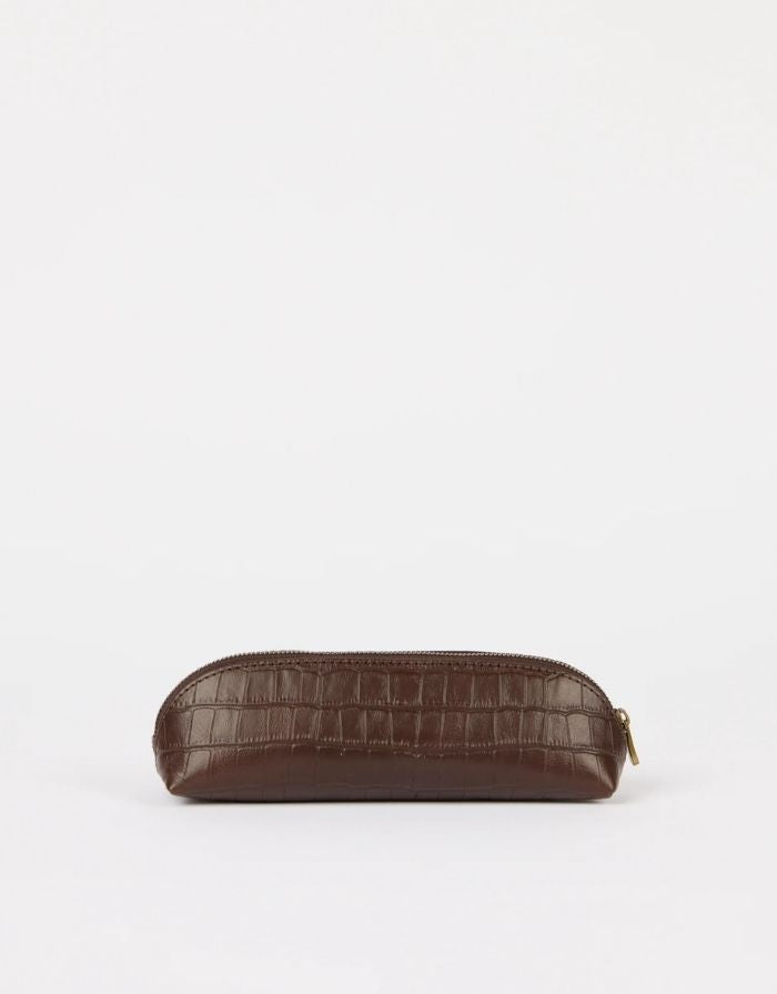 Das Pencil Case Croco Small in Chocolate ist ein edler, funktionaler Begleiter für organisierte und stilvolle Momente – perfekt für Arbeit, Uni oder die Handtasche.