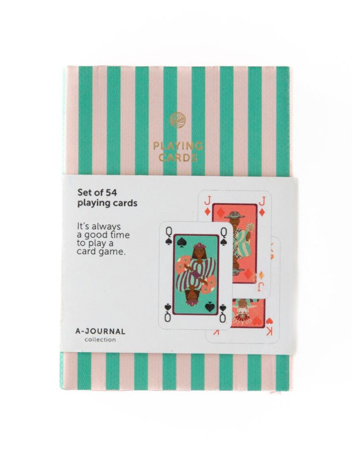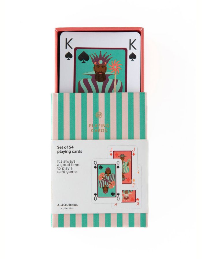 Unsere Spielkarten von A-Journal zeichnen sich durch einzigartige Illustrationen aus, die dem klassischen Kartenspiel einen verspielten Twist verleihen. Sie kommen in einer hübschen Box und sind damit nicht nur ein Highlight für gemütliche Spieleabende, sondern auch eine schöne Geschenkidee. Zeit, deinen Lieblingskartenspielen etwas mehr Farbe zu verleihen!