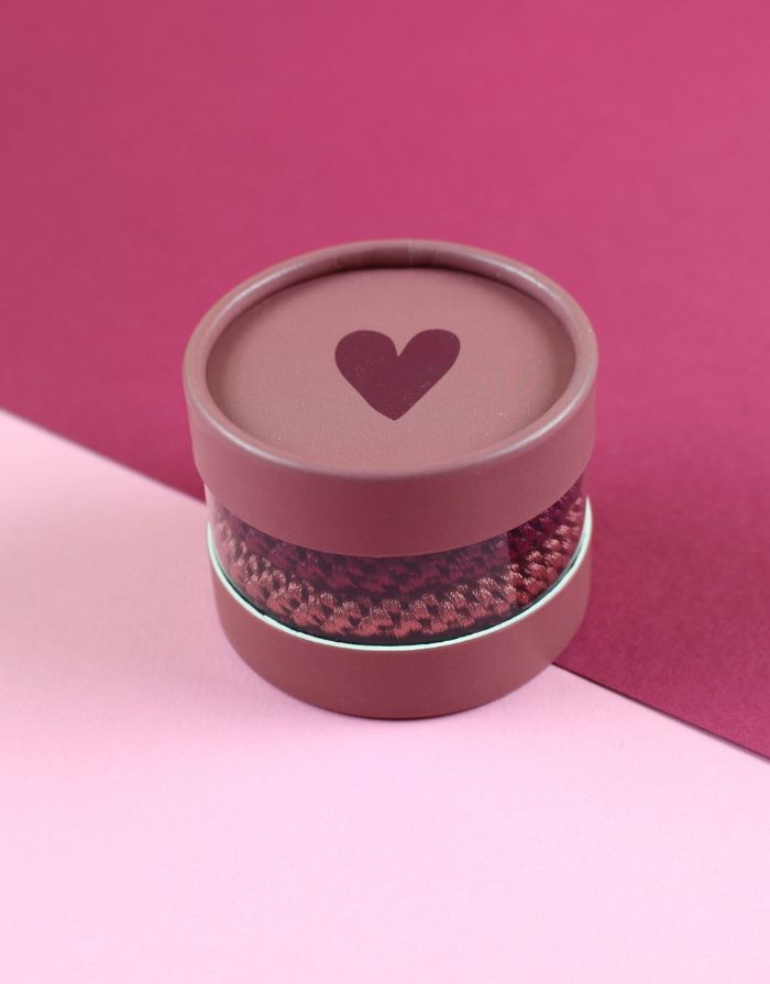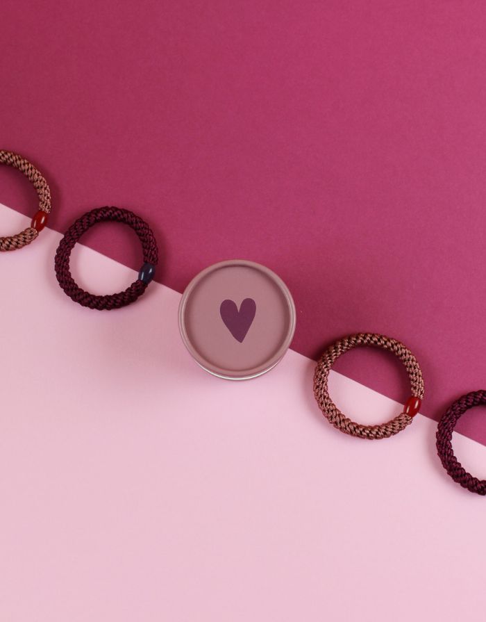 Mit unserem Haargummi-Set in Altrosa/Dunkelrot von Ava & Yves zauberst du im Handumdrehen schöne Frisuren. Vier elastische Haargummis in zarten Altrosa- und Dunkelrot-Tönen halten Zöpfe und Pferdeschwänze zuverlässig zusammen und bringen dabei dezente Eleganz in dein Styling. Verpackt sind sie in einer runden Geschenkbox mit Herz-Motiv – ideal zum Verschenken oder um sich selbst eine Freude zu machen.