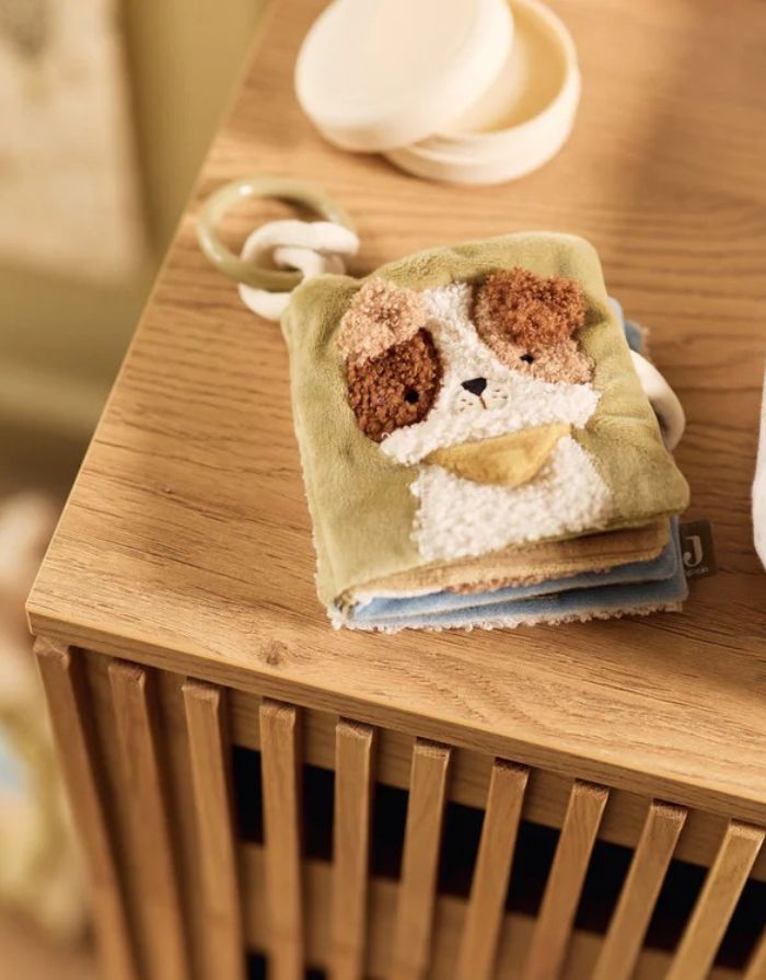 Mit unserem liebevoll gestalteten Tiny Park Aktivitätsbuch von Jollein entdeckt dein Baby eine Welt voller weicher Formen, freundlicher Tiere und spannender Geräusche. Die vier Seiten aus anschmiegsamer Baumwolle zeigen niedliche Motive wie Hase, Vogel, Ente und Schwan – jedes Detail lädt kleine Hände zum Greifen, Fühlen und Staunen ein. Raschelnde Elemente, ein Spiegel und kleine Bäumchen fördern spielerisch die Sinneswahrnehmung und Motorik deines Kindes.