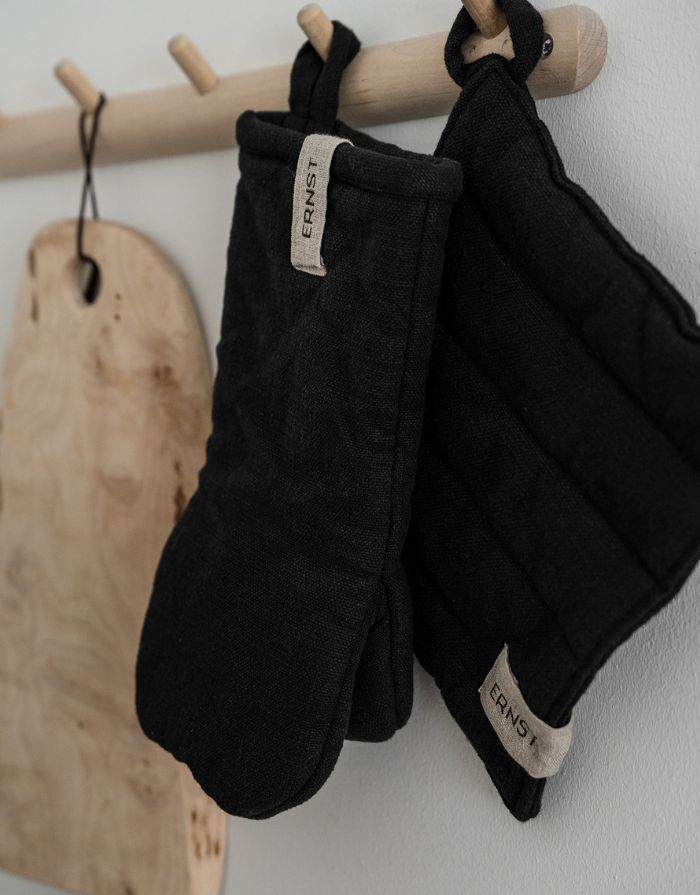 Der Ofenhandschuh von Ernst in Black passt perfekt in jede Küche. Hergestellt aus robustem Material, schützt er deine Hände zuverlässig vor der Hitze beim Backen oder Kochen. Die schlichte Farbe verleiht deinem Küchenbereich eine warme, angenehme Note.
