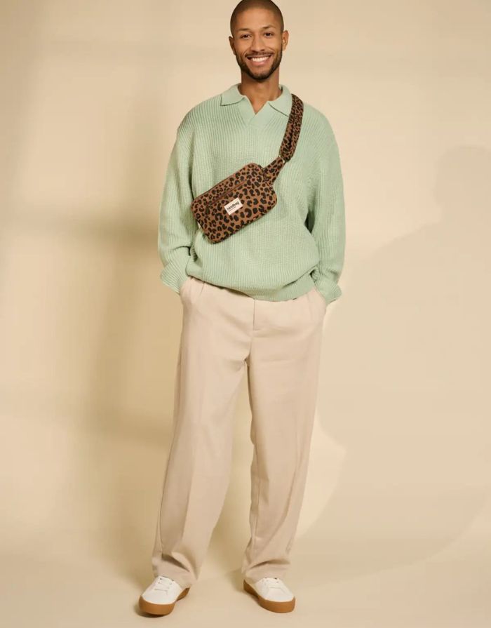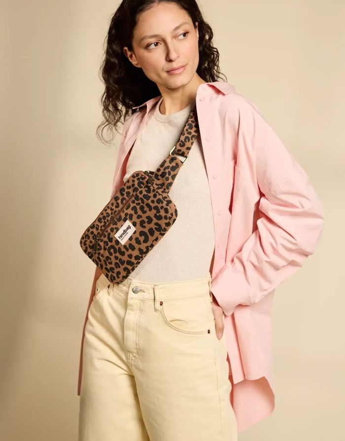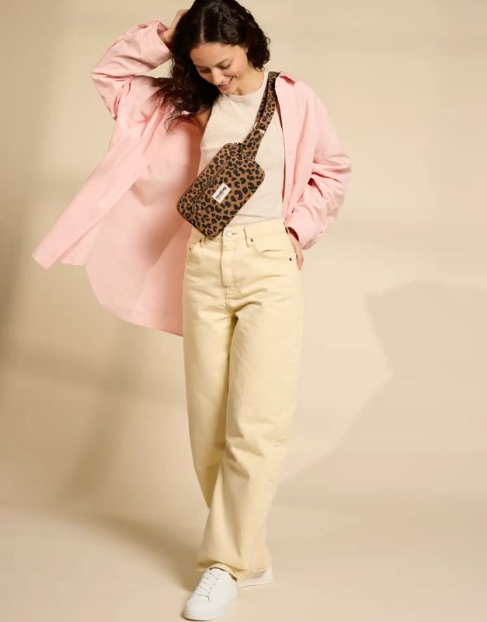 Fanny Pack Harry von Hindbag in der Farbe Leo Cannelle – rechteckige Bauchtasche aus GOTS-zertifizierter Bio-Baumwolle mit zwei Reißverschlusstaschen und verstellbarem Gurt