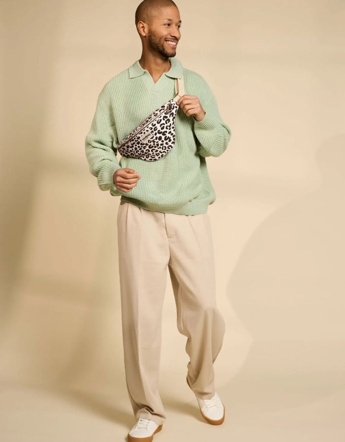 Die Gürteltasche Olivia Leopard Ecru von Hindbag ist der perfekte Alltagsbegleiter, der schnell unverzichtbar wird. Aus dickem, GOTS-zertifiziertem Bio-Cord gefertigt, bietet sie genug Platz für alles Wichtige – sicher verstaut dank ihres schlichten Innenfutters und des praktischen Doppelreißverschlusses. So kannst du die Tasche wahlweise links oder rechts tragen, ohne dass etwas herausfällt. Der verstellbare Schultergurt macht Olivia vielseitig – über einem dicken Mantel oder einem leichten T-Shirt, ganz wie du magst. Der cremefarbene Cord ist der Trend dieses Winters und rundet deinen Look lässig ab.