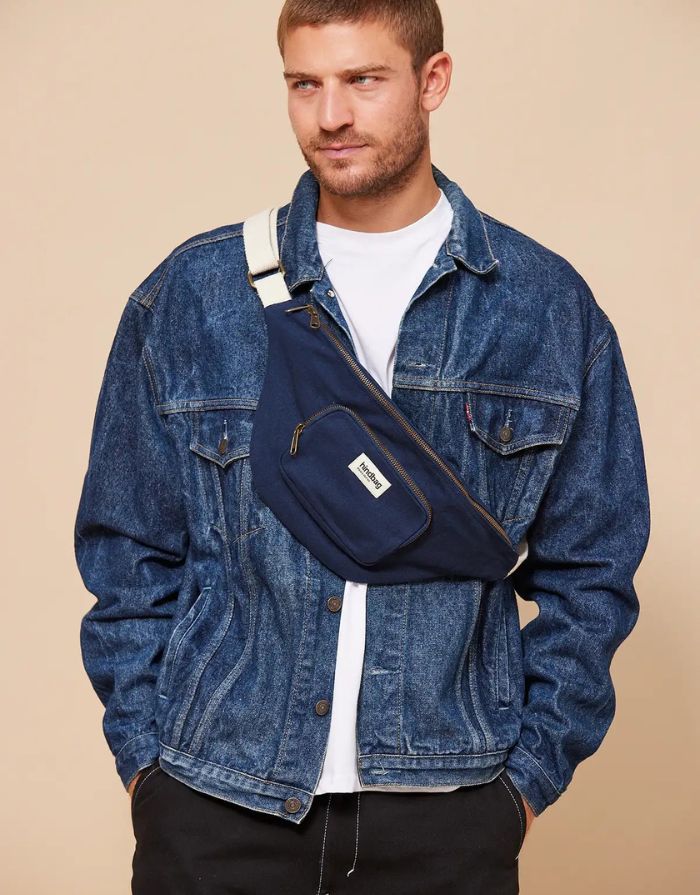 Fanny Pack Sofia XL von Hindbag in Navy – große Gürteltasche aus GOTS-zertifizierter Bio-Baumwolle mit zwei Außentaschen und verstellbarem Gürtelriemen.