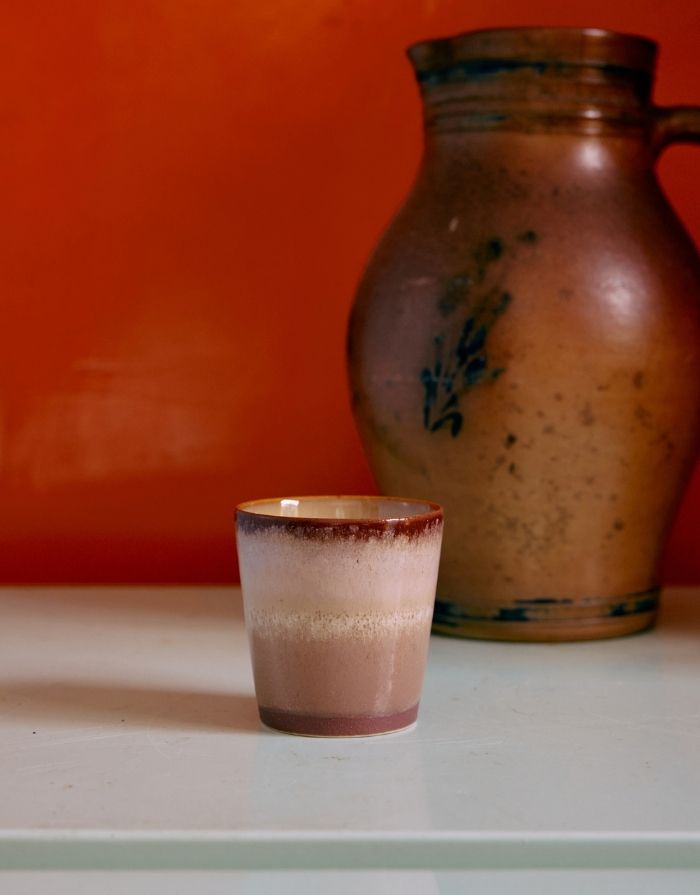 Diese handgefertigten und handbemalten Tassen sind echte Unikate und harmonieren perfekt mit den weiteren Produkten der 70’s Kollektion von HKliving.
