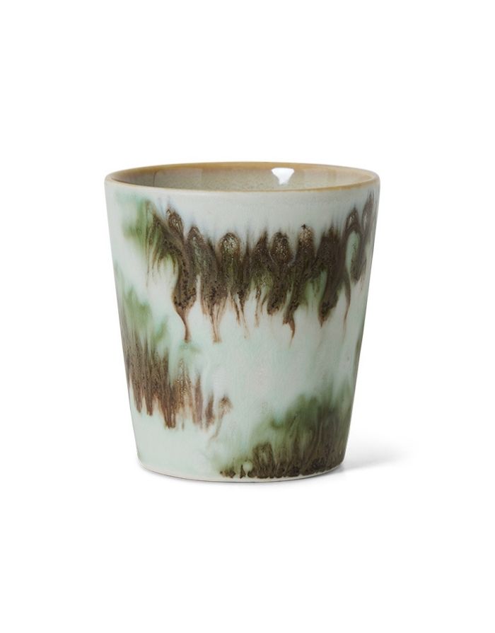 Diese handgefertigten und handbemalten Tassen sind echte Unikate und harmonieren perfekt mit den weiteren Produkten der 70’s Kollektion von HKliving.