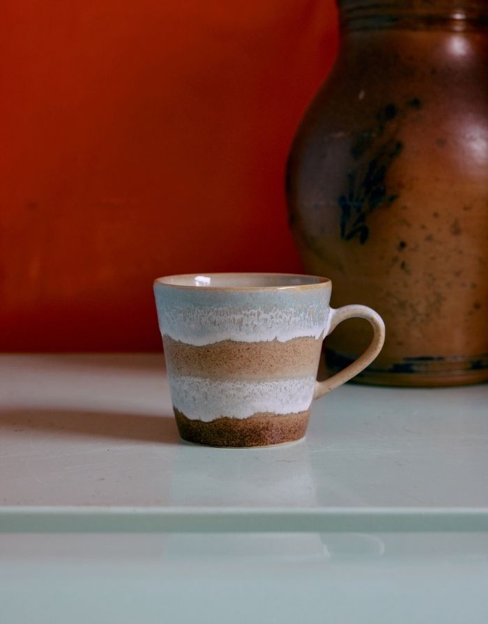 Mit den schönen Cappuccino Bechern von hkliving aus der 70's Kollektion kommt Farbe und Abwechslung auf deinen Tisch. Frei nach dem Motto Mix-and-Match sind alle Kombinationen erlaubt.