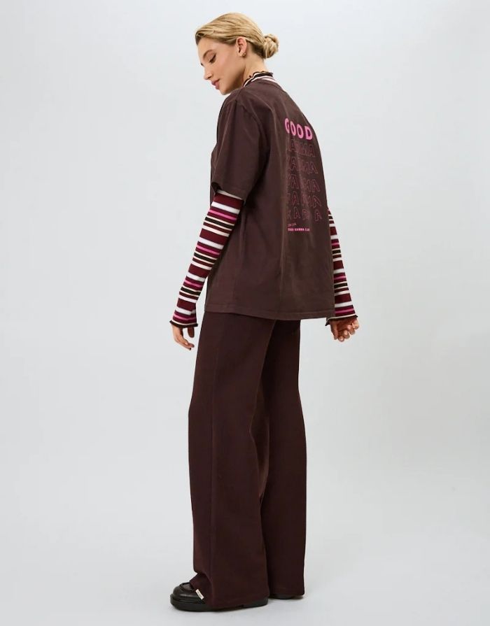 Das Good Karma Boyfriend T-Shirt von OH APRIL in der Farbe Truffle ist dein neues Everyday-Essential mit Statement-Charakter. Der lockere Oversized-Schnitt sorgt für einen modernen, lässigen Look, während die Ton-in-Ton Stickerei auf der Brust dezent wirkt und der große Good Karma Print in Candy auf dem Rücken für den Eyecatcher sorgt. Aus 100 % weicher Baumwolle gefertigt, bietet es maximalen Komfort und ist ideal für entspannte Tage mit positiver Energie.