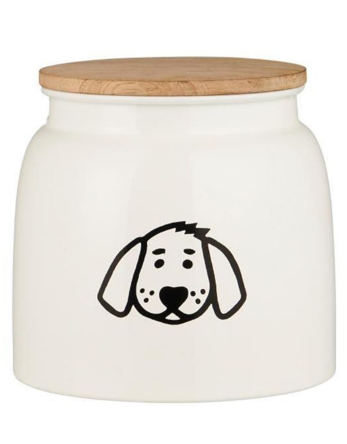 Weiße Hundefutterdose von Ib Laursen mit Hundemotiv und Holzdeckel, 2,2 Liter, 15,5 cm hoch, 16 cm Durchmesser