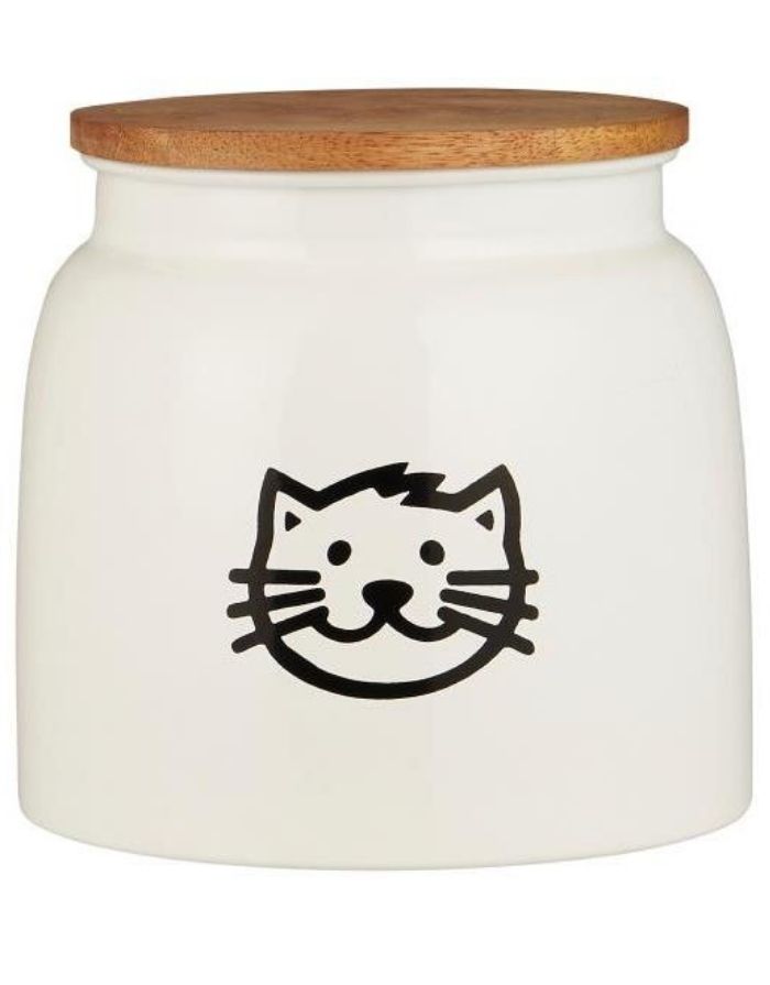 Die Katzenfutterdose von Ib Laursen ist die perfekte Kombination aus Funktionalität und charmantem Landhausstil. In klassischem Weiß gehalten und mit einem liebevollen Katzenmotiv verziert, fügt sie sich harmonisch in jede Küche ein. Der natürliche Holzdeckel sorgt nicht nur für einen warmen, nordischen Look, sondern verschließt die Dose auch zuverlässig – ideal, um Trockenfutter aromafrisch und geschützt aufzubewahren.