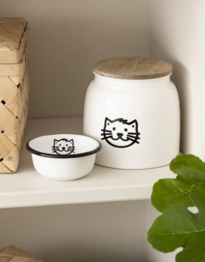 Mit ihrem großzügigen Fassungsvermögen von 2,2 Litern bietet die Dose ausreichend Platz für das tägliche Katzenfutter oder Leckerlis. Durch ihre stabile Verarbeitung und die angenehm handliche Größe ist sie ein praktisches und zugleich dekoratives Accessoire für alle Katzenbesitzer.