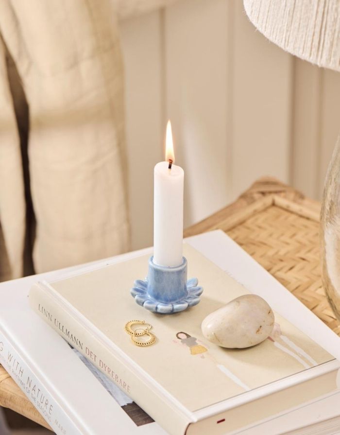 Der Kerzenhalter in Blumenform von Ib Laursen ist ein dekoratives Detail, das jedem Raum eine verspielte und zugleich elegante Note verleiht. Die blauen Blütenblätter formen einen zarten, harmonischen Look und setzen Stabkerzen charmant in Szene. Ob einzeln auf dem Tisch, kombiniert im Arrangement oder als farbiger Akzent auf einem Regal – dieser Halter bringt auf dezente Weise Frische und Stil in dein Zuhause.