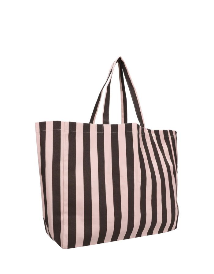 Die Beachbag Streifen in Puderrosa/Schokolade von Kado Design ist der perfekte Begleiter für sonnige Tage und entspannte Ausflüge. Die Kombination aus zartem Puderrosa und warmem Schokoladenton verleiht der Tasche einen modernen, stilvollen Look, der sofort ins Auge fällt und dennoch zeitlos wirkt.