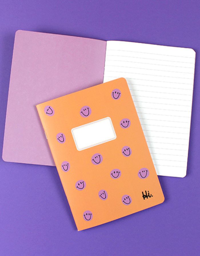 • Laden Sie das Bild in den Galerie-Viewer, Notizheft liniert I Apricot/Smilies Lila