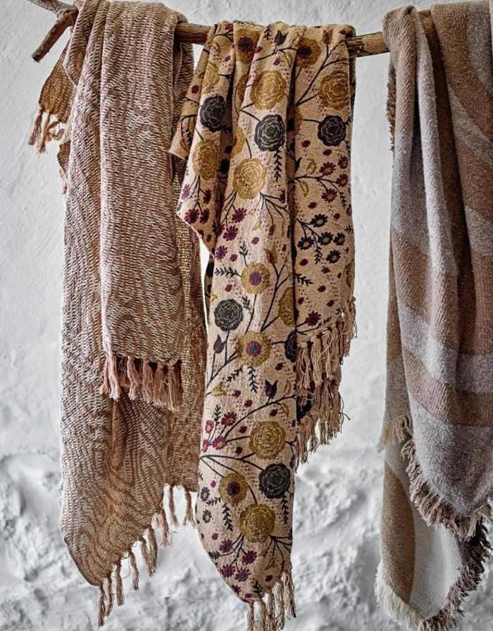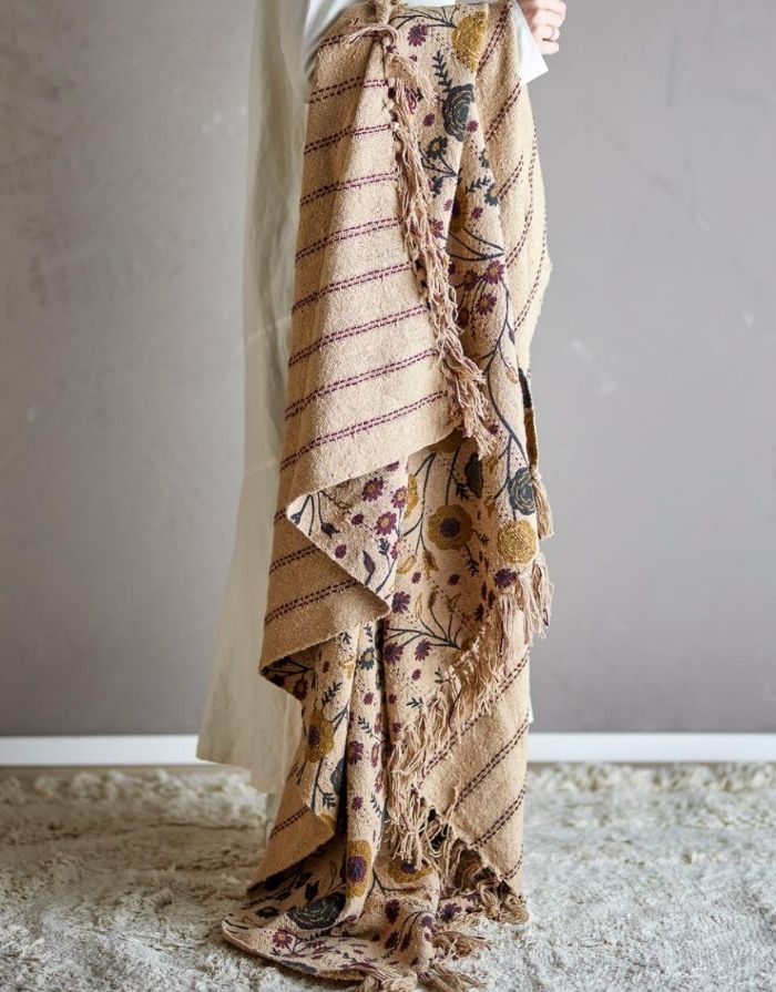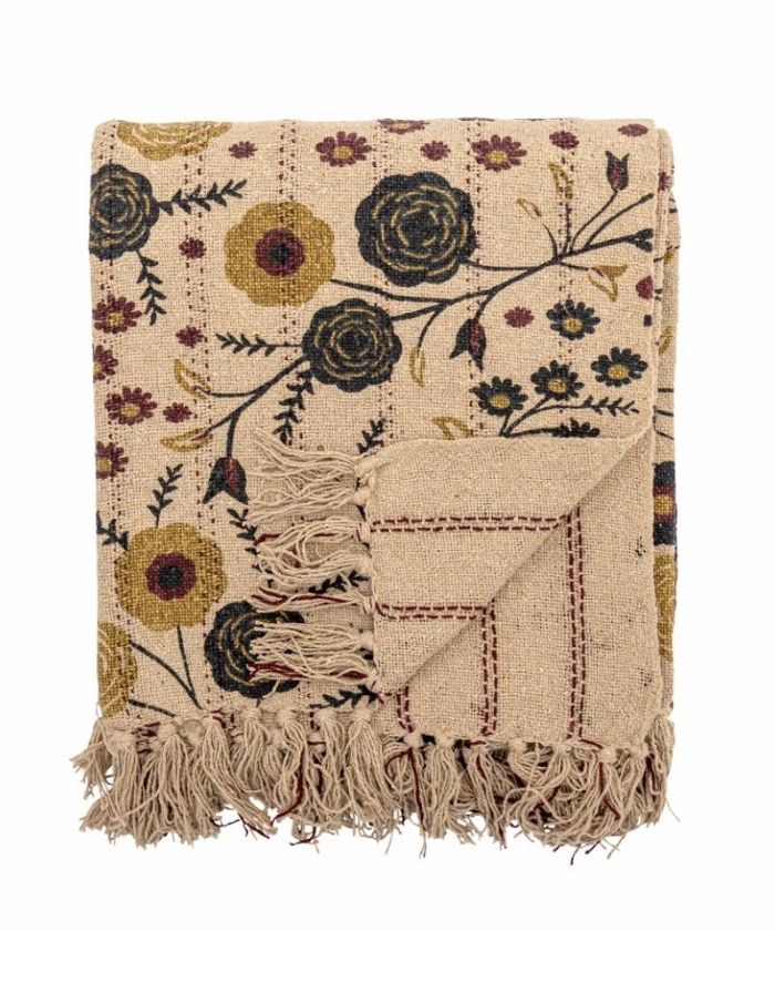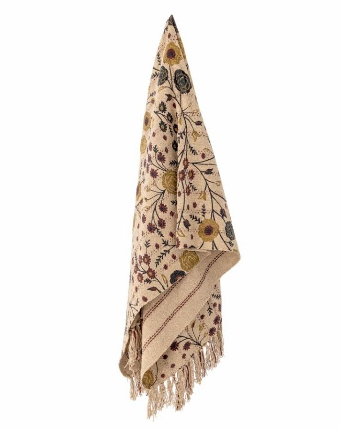 Mit unserer Eydis Decke von Bloomingville wird es gemütlich und zugleich stilvoll. Die gewebte Decke aus recycelter Baumwolle begeistert mit einem floralen Print in warmen Naturtönen. Die Rückseite ist mit feinen gewebten Streifen versehen, während Fransen an den Enden den weichen, wohnlichen Charakter unterstreichen – perfekt für Sofa, Sessel oder Bett.