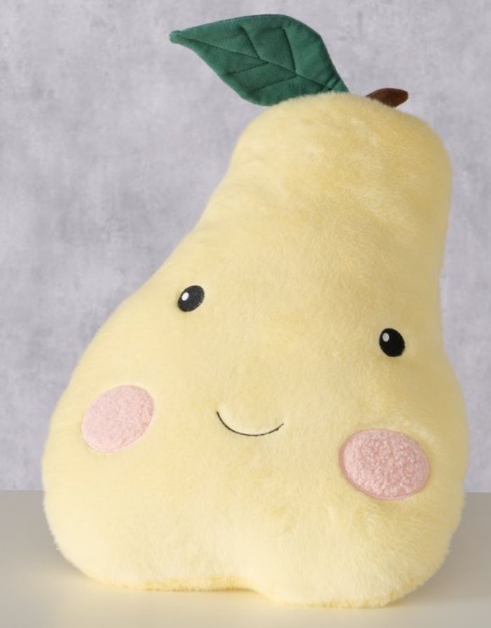 Mit unserem liebevoll gestalteten Kissen „Peary“ zieht ein fröhlicher Farbtupfer in dein Zuhause ein. Die handgearbeitete Obstform in warmem Gelb bringt sofort gute Laune, während das gestickte Gesicht dem Kissen einen charmanten Charakter verleiht – ideal für Kinderzimmer, Lieblingssessel oder gemütliche Wohnbereiche.