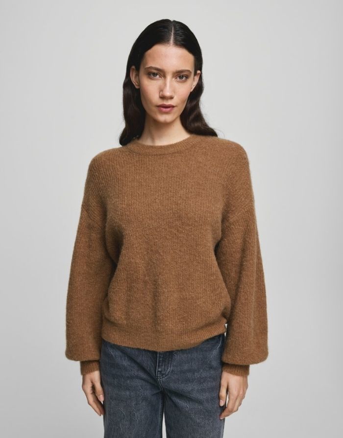 Design: Klassischer Strickpullover mit Ballonärmeln und überschnittenen Schultern