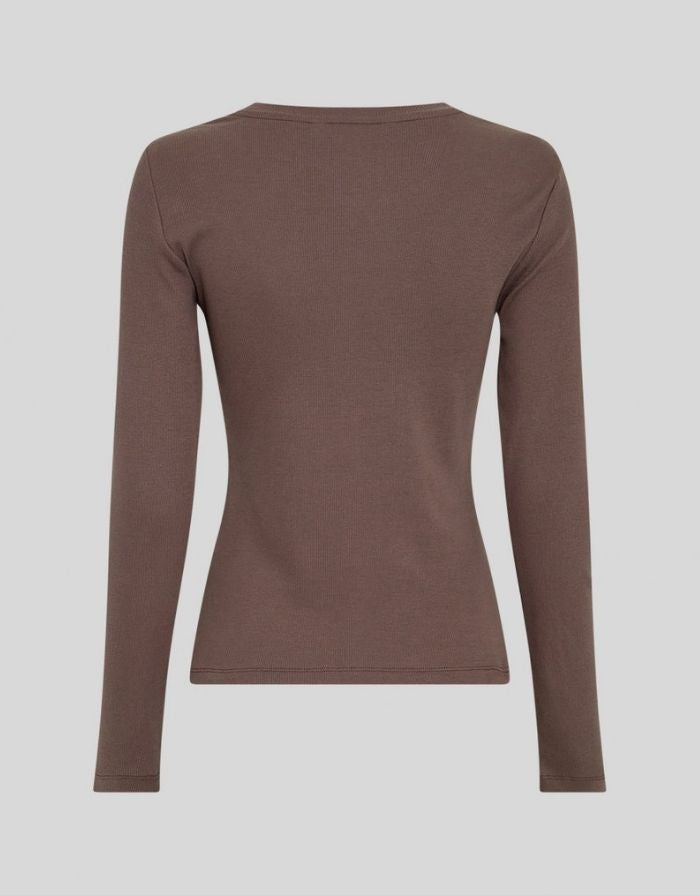 Das Kickie Rasmia Shirt von MSCH Copenhagen in der Farbe Hot Fudge ist ein vielseitiges Basic-Top mit angenehmem Tragekomfort. Mit seinem klassischen Rundhalsausschnitt und den langen Ärmeln lässt es sich perfekt solo tragen oder als Layering-Piece unter Pullovern, Jacken oder Blazern kombinieren. Das gerippte Bio-Baumwollmaterial sorgt für ein leichtes, atmungsaktives Tragegefühl und macht das Shirt zu einem langlebigen Favoriten in deinem Kleiderschrank.