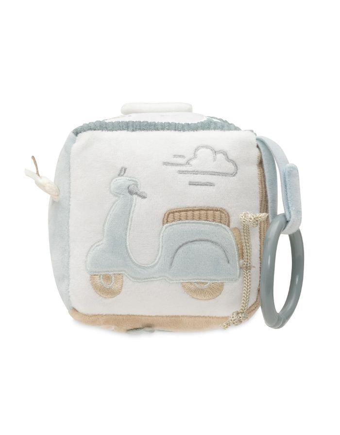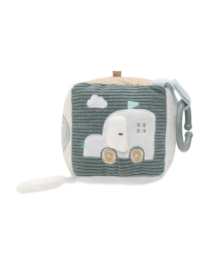 Mit unserem abenteuerlichen Aktivitäten-Würfel aus der On The Go-Kollektion kann dein kleiner Entdecker auf spielerische Reise gehen! In frischen Farben wie Sea Green und Biscuit gibt es auf jeder Seite etwas Neues zu entdecken – vom knisternden Schlüssel über eine kleine Tankstelle bis zur Ampel mit Spiegel. Die verschiedenen Strukturen, Geräusche und Formen fördern die Sinne und machen das Spielen zu einem spannenden Erlebnis.