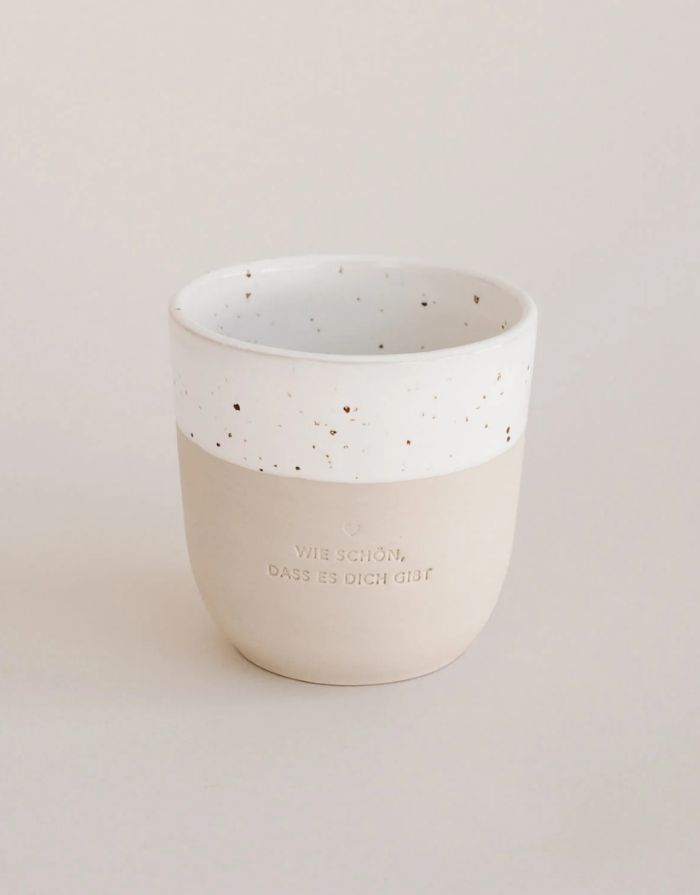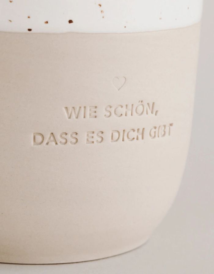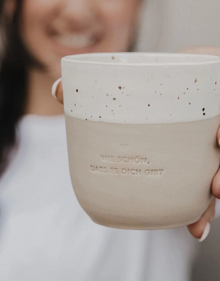 Der zarte Schriftzug „Wie schön, dass es dich gibt“ macht sofort klar: Mit diesem Becher machst du jemandem eine besondere Freude. Ob Kaffee, Tee oder heiße Schokolade – mit diesem Begleiter schmeckt jeder Schluck ein kleines bisschen besser.