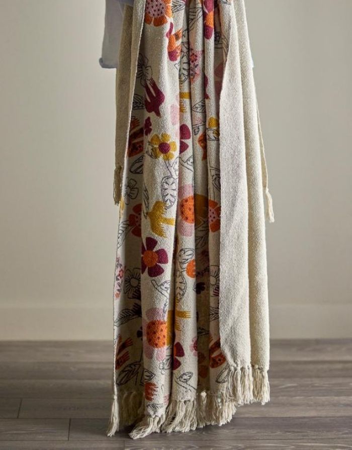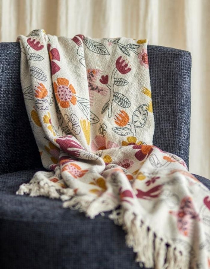 • Gewebte Wohndecke mit floralem Print auf einer Seite