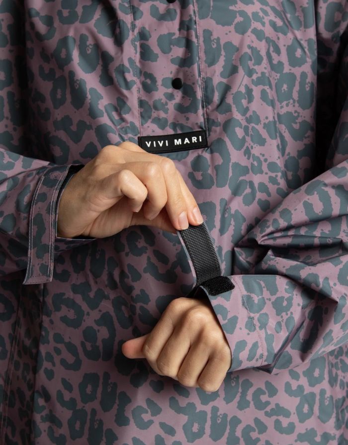 Mit dem Raincoat Leo Splashes / Dark Grey / Ash Plum von VIVI MARI bist du bestens auf jedes Wetter vorbereitet. Dieses urbane Cape mit lässiger Oversize-Passform kombiniert modernes Design, Nachhaltigkeit und Funktionalität. Aus recycelten Rohstoffen gefertigt und absolut wasserdicht, hält dich der Mantel zuverlässig trocken – ob in der Stadt, beim Spaziergang oder auf dem Fahrrad.