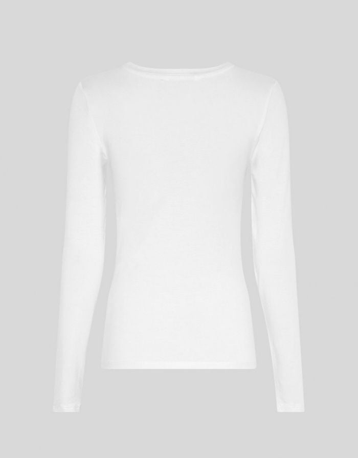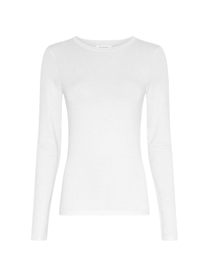 Das Longsleeve Shirt Betrina in Bright White von MSCH Copenhagen ist ein zeitloses Basic, das in keiner Garderobe fehlen darf. Mit seinem schlichten O-Ausschnitt, den langen Ärmeln und der figurbetonten Passform eignet es sich ideal zum Layern – unter Strick, Blazern oder einfach solo für einen cleanen, modernen Look. Die weiche, hochwertige Materialmischung mit TENCEL™ Lyocell sorgt für ein angenehmes Tragegefühl und macht das Shirt zum vielseitigen Allrounder im Alltag.