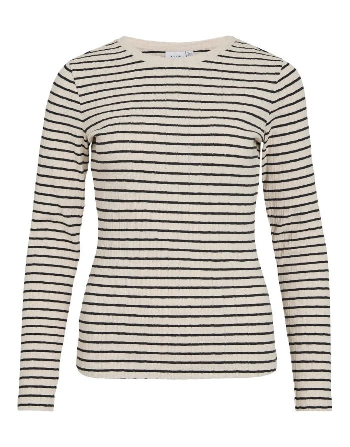 Das Viameline O-Neck Shirt von VILA in Birch/Black ist ein moderner Klassiker für deinen Alltag. Die gerippte Struktur, der weiche, elastische Stoff und der feminine O-Ausschnitt machen es zu einem unkomplizierten Lieblingsteil. Die Farbkombination aus hellem Birch und kontrastierendem Schwarz wirkt klar, minimalistisch und vielseitig kombinierbar – perfekt zu Jeans, Röcken oder unter Strick.