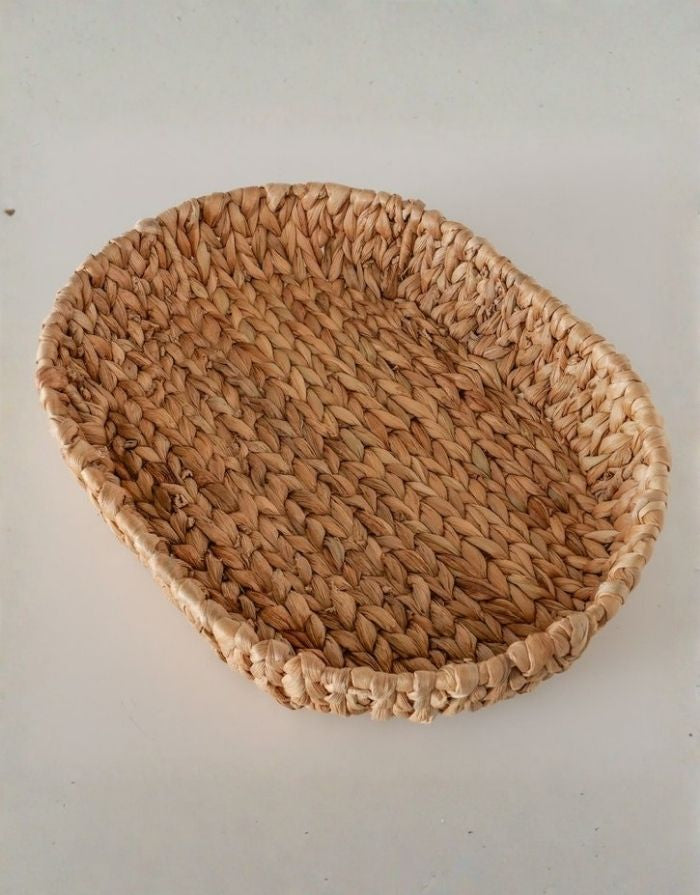 Ovales Tablett von Boltze aus Wasserhyazinthe und Metall in Naturfarbe
