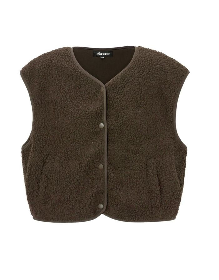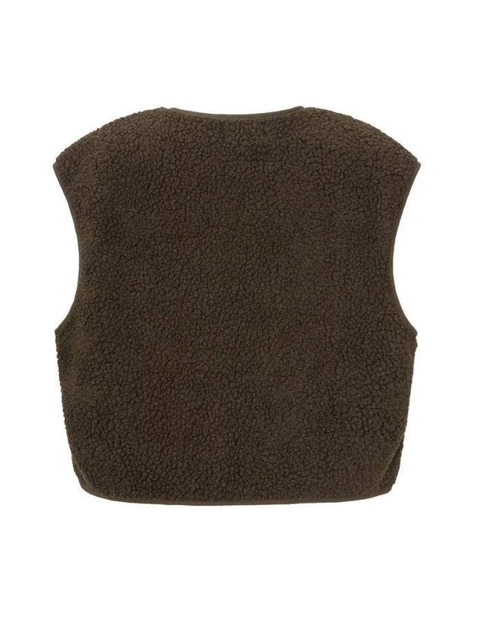 Mit unserer Teddyweste in Dark Brown entsteht ein vielseitiges Layering-Piece für die kühleren Monate. Die klare, minimalistische Silhouette trifft auf eine weiche, wärmende Oberfläche und macht die Weste zu einem zuverlässigen Begleiter für Herbst und Winter. Durch den ärmellosen Schnitt bietet sie angenehme Wärme ohne aufzutragen und eignet sich ideal für Übergangswetter sowie für das Tragen über Strick, Blusen oder leichten Jacken. Funktionale Fronttaschen ergänzen das Design und verbinden Alltagstauglichkeit mit ruhiger Ästhetik.