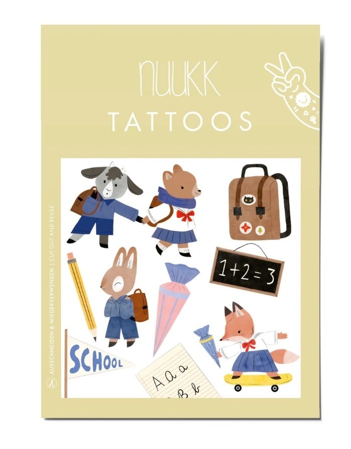 Mit unseren Tattoos von nuukk wird jeder Tag ein kleines Abenteuer. Die liebevoll gestalteten Motive bringen Fantasie, Farbe und Freude auf die Haut und sind perfekt für Kinderfeste, kleine Überraschungen oder einfach für zwischendurch. Hergestellt aus veganer Wassertransferfolie und dermatologisch mit „sehr gut“ getestet, verbinden die Tattoos spielerischen Spaß mit einem guten Gefühl für Haut und Umwelt.