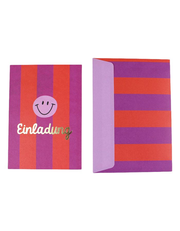 Mit unseren Einladungskarten Streifen Violett/Koralle/Flieder von ava&yves werden Geburtstage, Spielnachmittage oder andere besondere Anlässe noch stilvoller angekündigt. Das fröhliche Streifenmuster in Violett, Koralle und Flieder bringt sofort gute Laune und sorgt für einen liebevollen ersten Eindruck bei deinen Gästen.