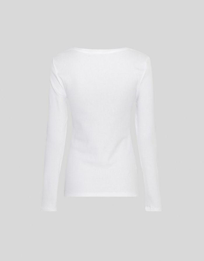 MSCH Copenhagen Longsleeve Jeanie Rasmia Bright White mit U-Ausschnitt und figurbetonter Passform.