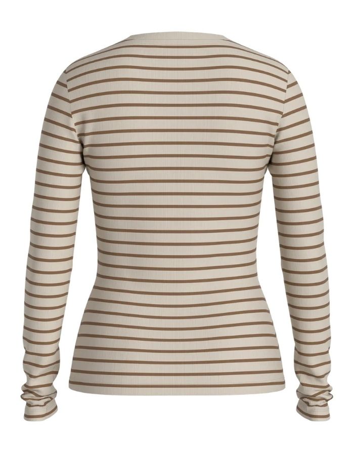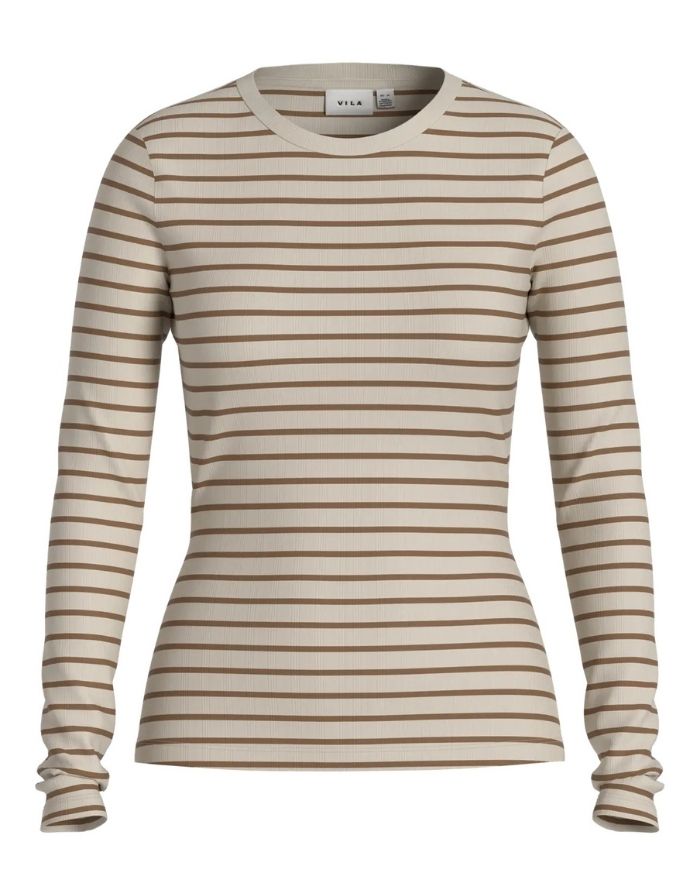 VILA Shirt Viameline O-Neck in Birch/Toasted Coconut, geripptes Basic mit O-Ausschnitt.