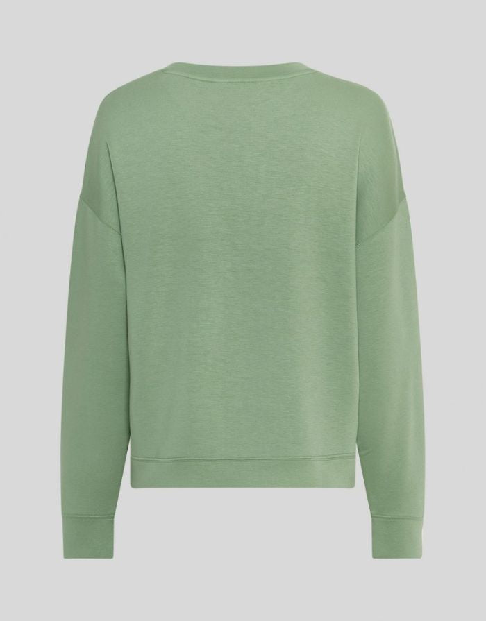 • Laden Sie das Bild in den Galerie-Viewer, Ima Q Pullover Green Eyes von MSCH Copenhagen in weichem Grün, mit rundem Halsausschnitt, überschnittenen Schultern und lockeren Ärmeln, aus LENZING™ ECOVERO™-Viskosemix – moderner, bequemer Alltags-Pullover