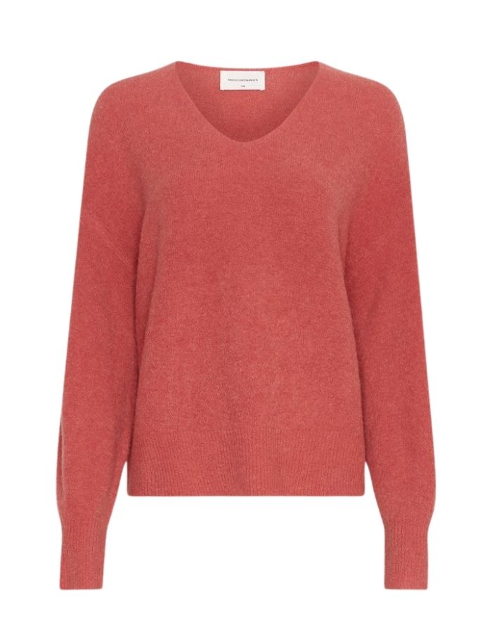 Der Pullover mit V-Ausschnitt Hila Hope in der Farbe Faded Rose von MSCH Copenhagen ist ein weicher, moderner Strickpullover mit entspannter Silhouette. Der feminine V-Ausschnitt trifft auf überschnittene Schultern und lange Ärmel mit gerippten Bündchen, wodurch ein lässiger, zugleich stilvoller Look entsteht. Die melierte Farbgebung in Faded Rose verleiht dem Pullover eine warme, sanfte Ausstrahlung und macht ihn zu einem vielseitigen Lieblingsstück für Alltag, Büro oder Freizeit. Die hochwertige Materialmischung sorgt für ein angenehmes Tragegefühl und macht den Pullover ideal für Übergangszeiten und kühlere Tage.