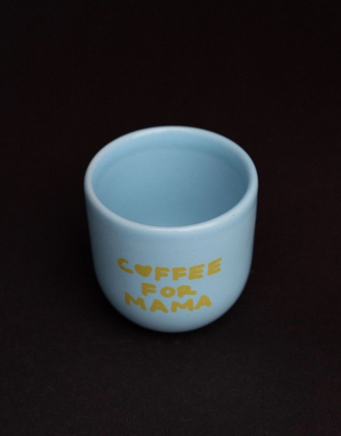 Farbe: Blau glänzend mit Schriftzug Coffee for Mama