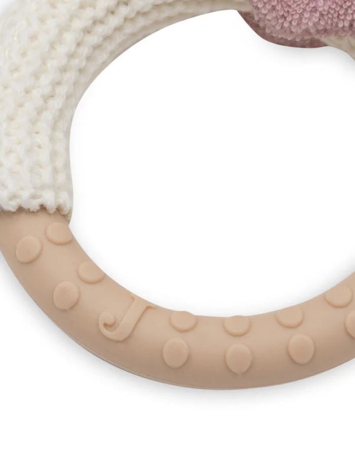 Jollein Beißring „Katze Jill“ – weicher Silikon-Beißring mit gestricktem Katzenkopf, CE-zertifiziert, lindert Zahnungsschmerzen.