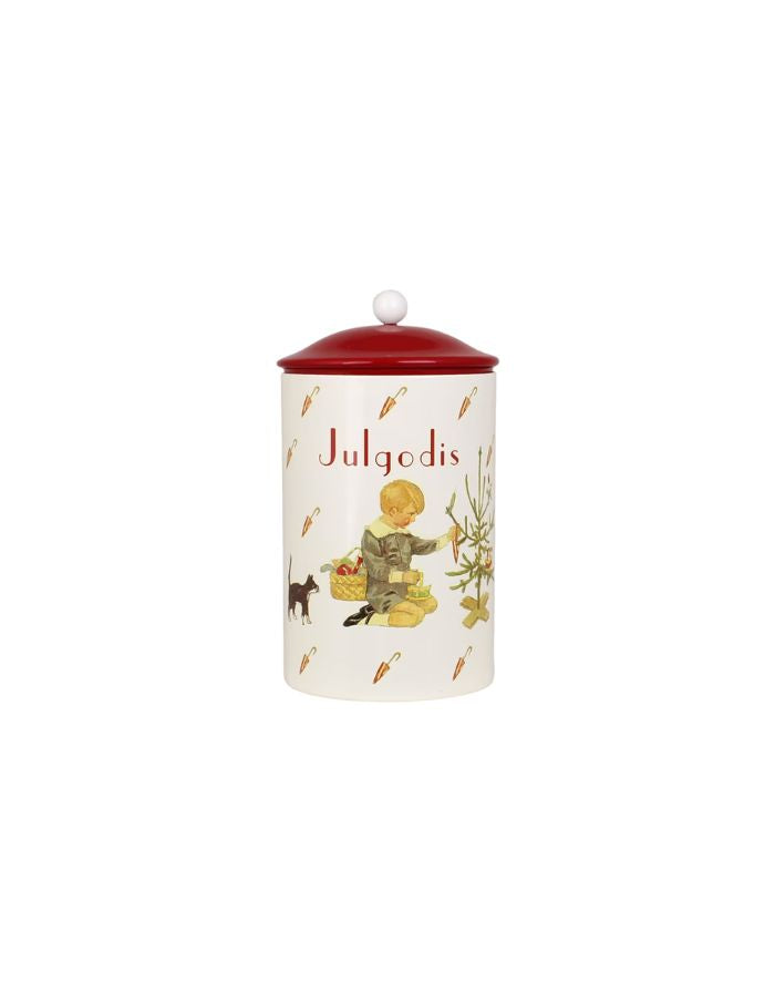 Mit der schönen runden Weihnachtsdose Aina von Strömshaga mit einem traditionellen schwedischen Weihnachtsmotiv und dem Text Julgodis für Süßigkeiten, kehrt eine wunderbar gemütliche Weihnachtsstimmung in deinem Zuhause ein. Ein Silikonring sorgt dafür, dass der Deckel verschlossen ist.