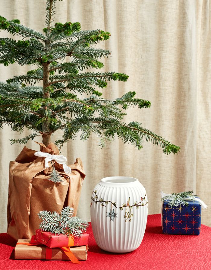 Die Hammershøi Christmas Vase in 21 cm Höhe vereint klassisches Design mit moderner Weihnachtsstimmung. Kählers ikonische Hammershøi-Vase wurde von der Künstlerin Rikke Jacobsen mit liebevollen Aquarelldekorationen veredelt, die das elegante, weiß glasierte Porzellan in eine festliche Interpretation verwandeln.
