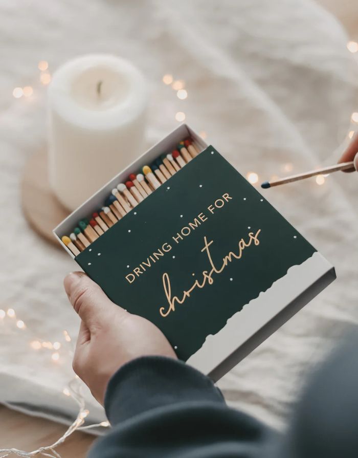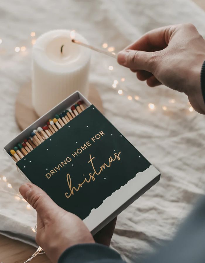 Entdecke die festlichen Streichhölzer Christmas Car von Eulenschnittund mache deine Winterabende noch gemütlicher und magischer. Auf der Vorderseite der Schachtel siehst du ein liebevoll illustriertes rotes Weihnachtsauto, das auf einem verschneiten Weg unterwegs ist. Auf dem Dach stapeln sich bunte Weihnachtspakete – eine schöne Erinnerung an die freudige Heimfahrt zu den Liebsten. Passend dazu haben die Streichhölzer bunte Köpfe, die farblich auf die Geschenkpäckchen abgestimmt sind und für extra festliche Stimmung sorgen.