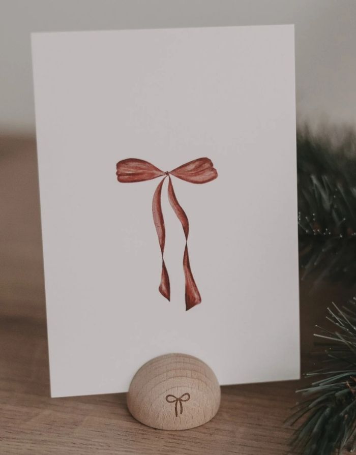 Die Postkarte Bow von Eulenschnitt ist ein festlicher Gruß mit ganz besonderem Charme. Die liebevoll illustrierte rote Schleife bringt Wärme, Eleganz und einen Hauch Weihnachtszauber in jedes Zuhause – perfekt, um Geschenke zu verschönern oder persönliche Grüße zu versenden.