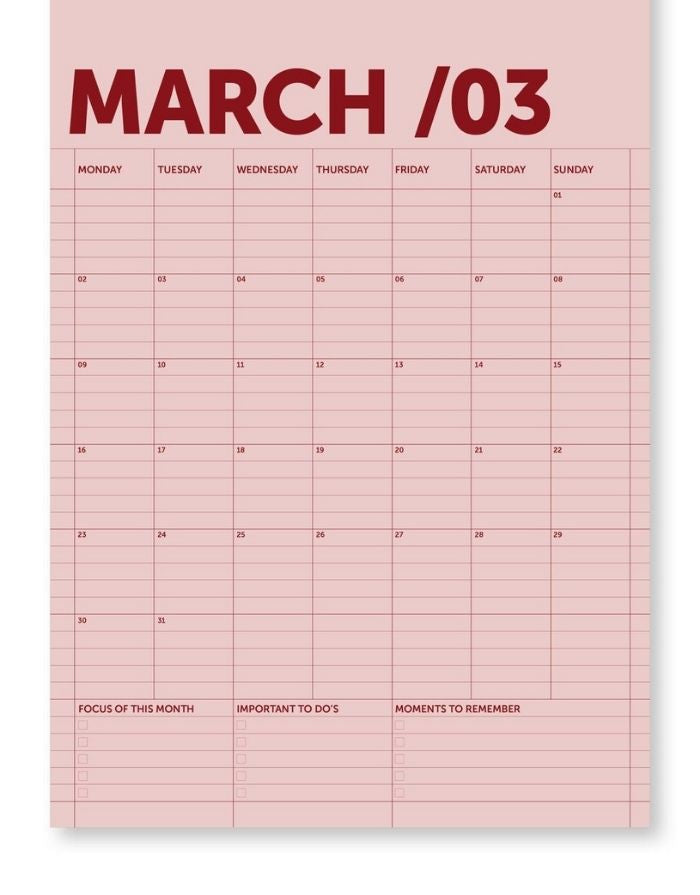Go big or go home – mit dem A3 Kalender 2026 von A-Journal behältst du das ganze Jahr über den Überblick. Der großformatige Wandkalender bietet viel Platz für Termine, Notizen und To-dos und sorgt mit seinen warmen Rosatönen gleichzeitig für einen modernen, dekorativen Akzent in deinem Zuhause oder Büro. Jede Monatsübersicht ist durchdacht gestaltet und mit praktischen Listen versehen – perfekt für alle, die gern alles im Blick behalten.