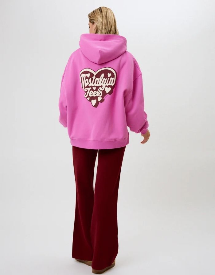 OH APRIL Hoodie Boyfriend Nostalgia Heart in Candy – oversized geschnittener Kapuzenpullover aus Baumwollmix mit Stickerei und Herzprint auf dem Rücken.