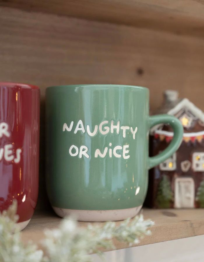 Mit unserem „Naughty or Nice“ Becher von Det Gamle Apotek wird jeder Schluck zu einem kleinen Festmoment. Der charmante Becher aus Steingut präsentiert sich in sanftem Grün mit verspieltem Schriftzug – perfekt für gemütliche Kaffeepausen in der Adventszeit oder als humorvolles Geschenk für liebe Freunde.